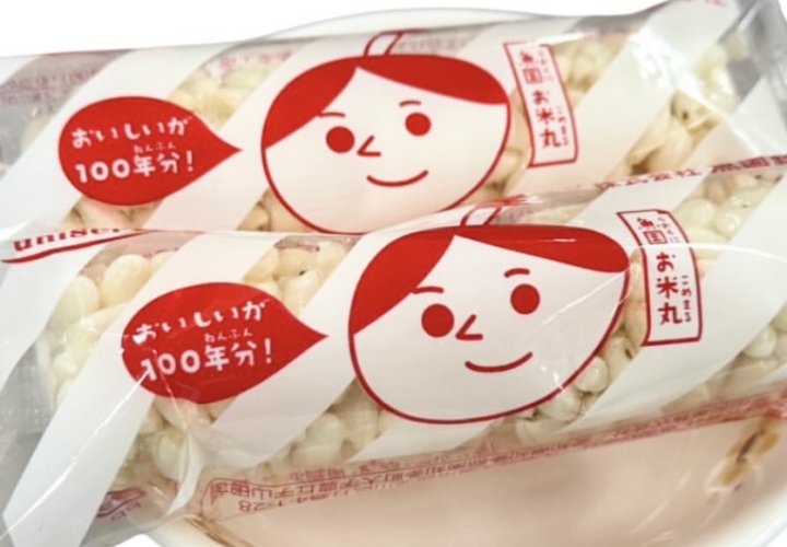 五平餅作りを見守るお米丸くん