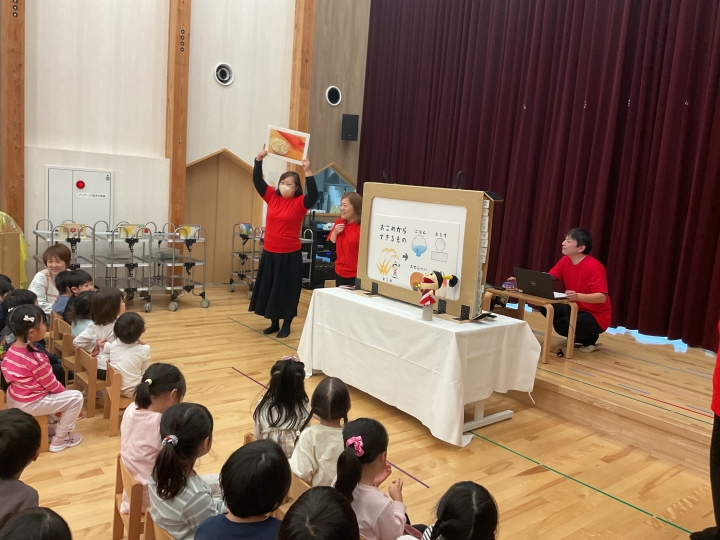 NHK「おかあさんといっしょ」より「あさごはんマーチ」をみんなで歌い、元気な歌声をプレゼントしました。